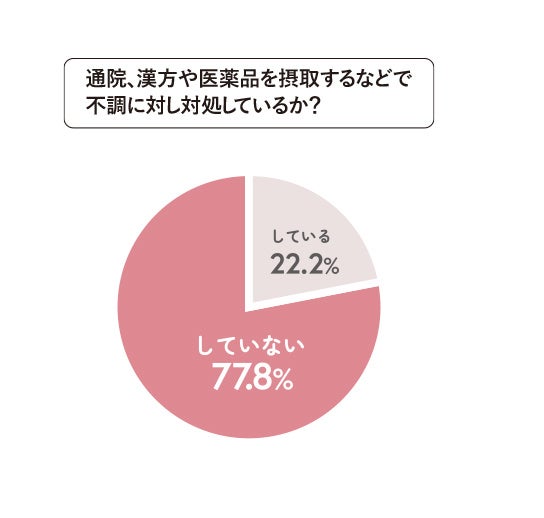 しかし言葉の認知度とは反し、人生の折り返し地点を迎えつつある変わりめ期の女性たちは、日々不調を感じつつも対処をしていない人が68.1%と半数以上です。